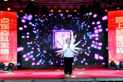 在聯(lián)歡會的現(xiàn)場,華麗舞臺燈光璀璨,背景制作喜氣祥和,一派喜迎新春的美好盛況,那一首首悅耳動聽的歌曲,那一段段優(yōu)美豪放的舞蹈,那一個個風(fēng)趣搞笑的互動小品.......在舞臺上傾情巨獻(xiàn),精彩紛呈,掌聲與喝彩此起彼伏,現(xiàn)場氣氛熱烈、喜氣、祥和,凱為人的魅力與風(fēng)采在這一刻光芒四射,凱為人的才藝在這一刻八仙過海?。?br />